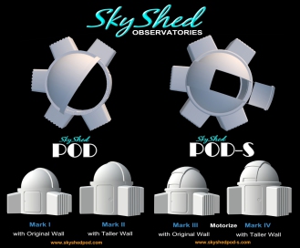 The hands-down winner for the dome was the Sky Shed POD-S 8' dome with four Mark IV bays. Wayne Parker, the owner and designer of Sky Shed, has been amazing to work with and very responsive to my questions and needs.